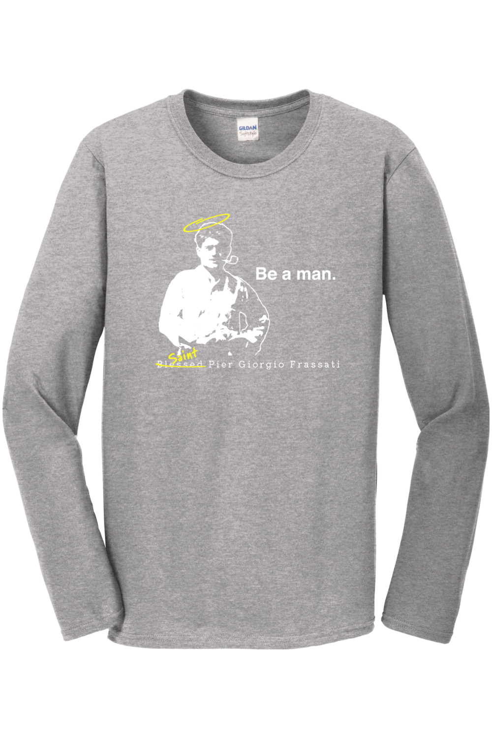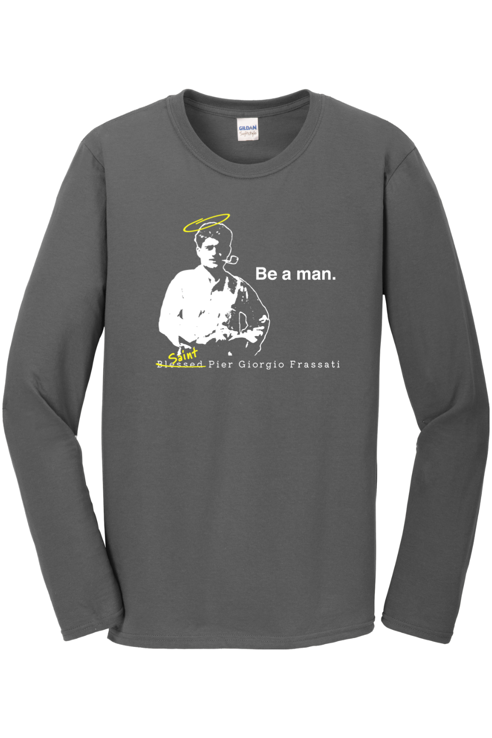 Set the manly standard by sporting this St. Pier Giorgio Frassati Long Sleeve.