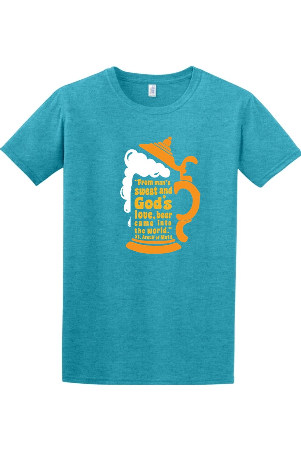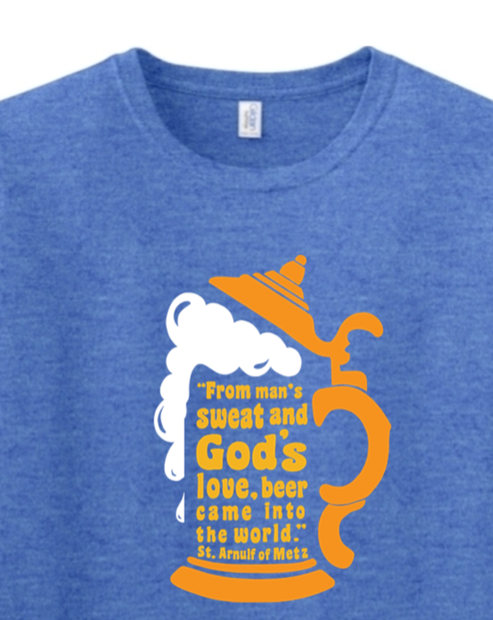 A monk drinking beer?! That’s right! St. Arnulf of Metz said it best: “From man’s sweat and God’s love, beer came into the world.” Celebrate the gift from both God and man beer-round with this t shirt which is sure to turn heads!