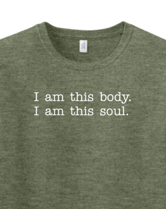 Wear the witness of the human being's integrity as both body and soul. We are each a body/soul composite. We are not merely matter - atoms and particles - and we are not merely immaterial souls. This truth of being human was worn and elevated by God Himself through the incarnation. Put on this shirt as a testament to our amazing existence, and be grateful for the wonder you are!