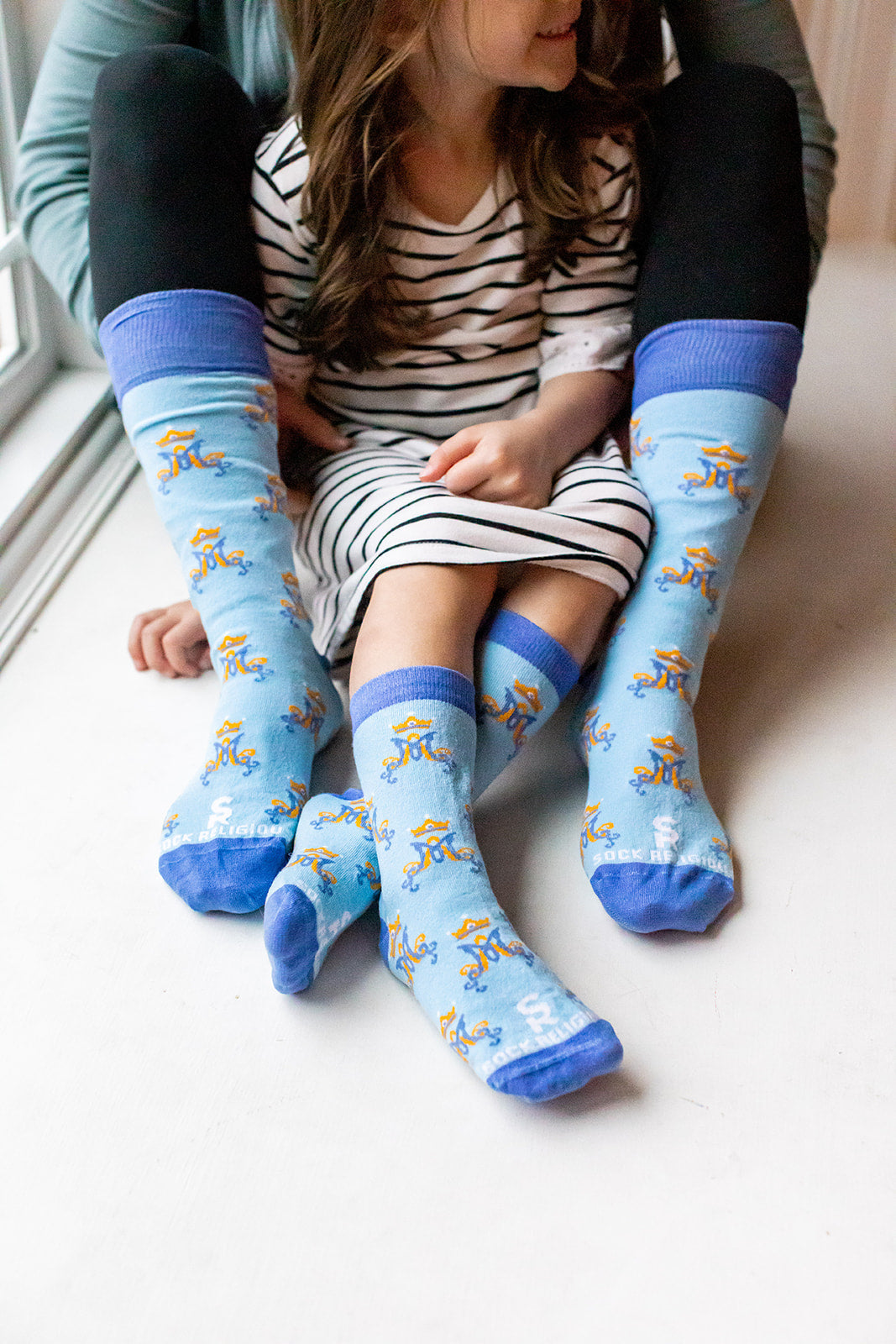 In many Marian images, Mary is seen stomping on the head of the serpent, representing Satan. Wear these socks and remember to call upon Mary to protect you from the attacks of the evil one and draw you closer to her Son!