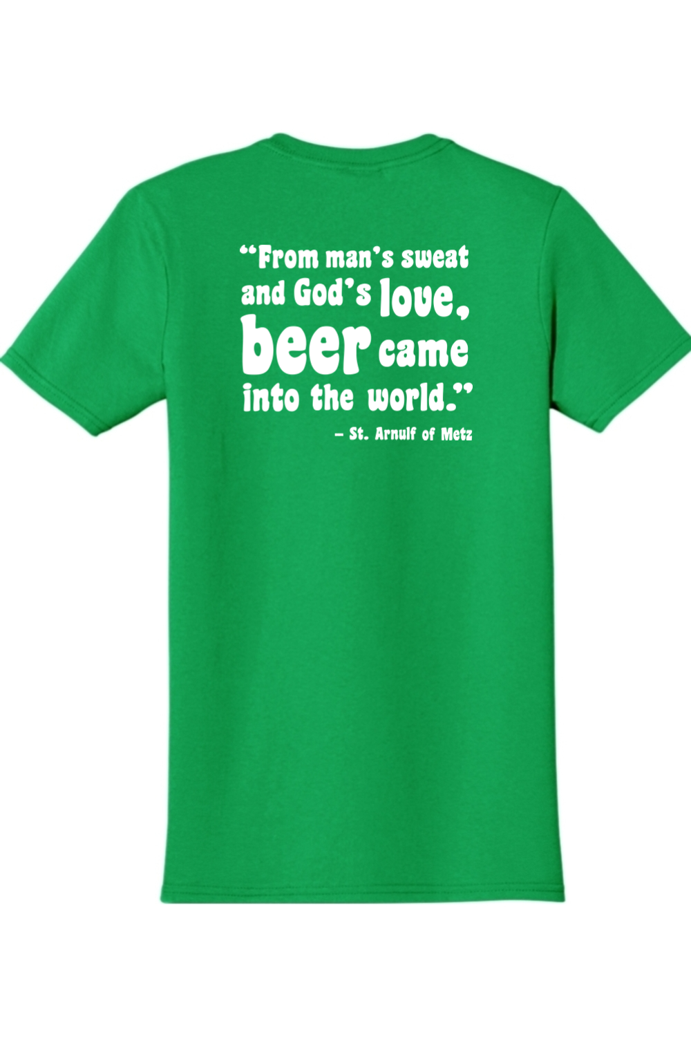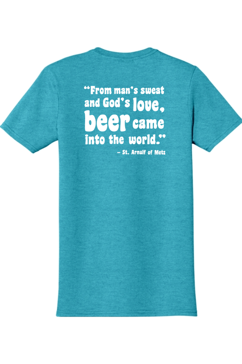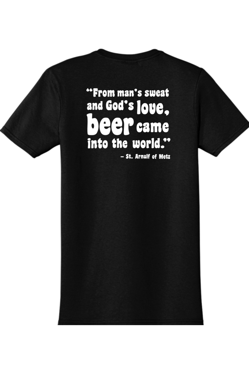 A monk drinking beer?! That’s right! St. Arnulf of Metz said it best: “From man’s sweat and God’s love, beer came into the world.” Celebrate the gift from both God and man beer-round with this t shirt which is sure to turn heads!