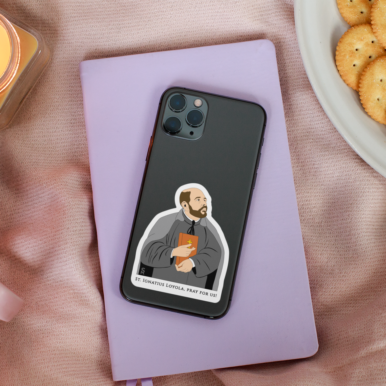 Get ready to stick to the faith with our St. Ignatius of Loyola Sticker! Featuring a bold and inspiring design, this sticker highlights the founder of the Jesuits in a way that's perfect for your laptop, water bottle, or notebook. Whether you're a fan of his spiritual exercises or his call to "go forth and set the world on fire," this sticker is a daily reminder to live with purpose and devotion. Let St. Ignatius' courage inspire your day—one sticker at a time.